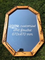 Miroir avec cadre en bois (sapin) customisé avec un effet foudre comblé par de la résine