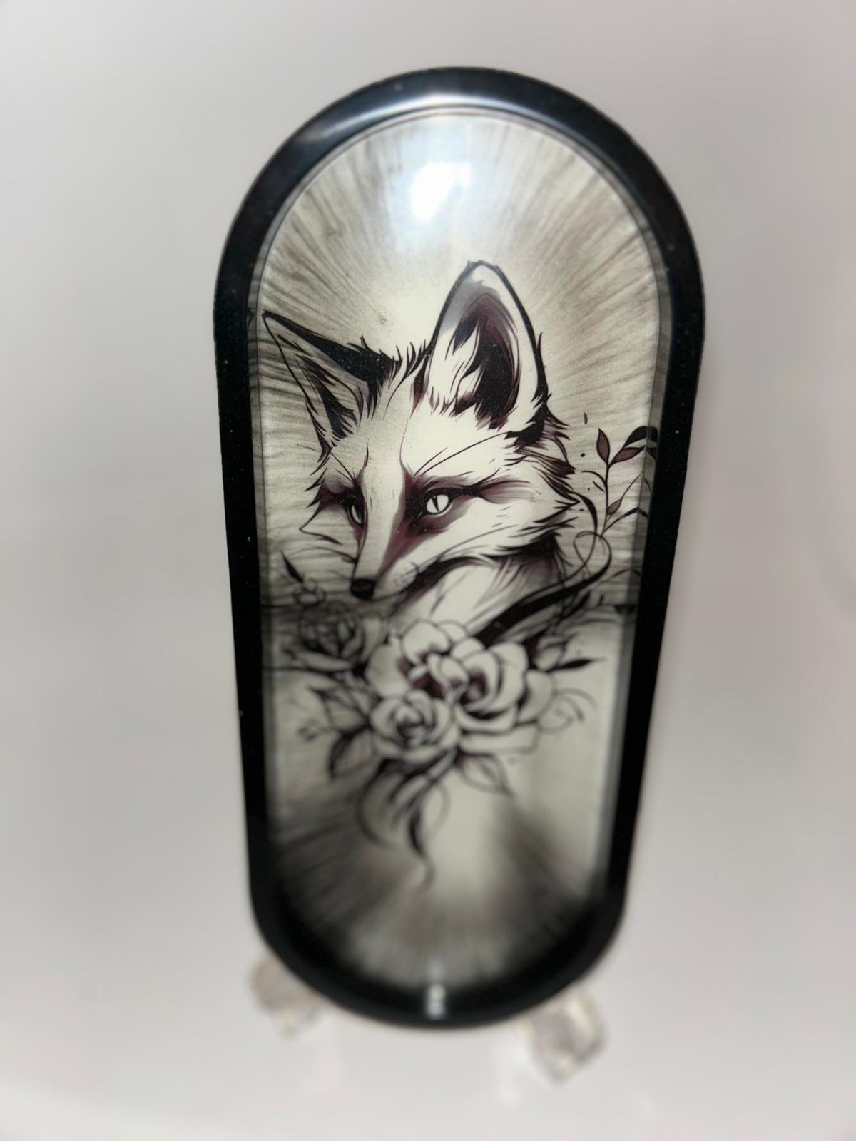 Plat en résine avec un décor d'une petite renarde