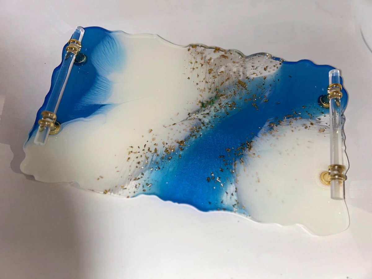 Plateau en résine avec 2 poignées en laiton et résine