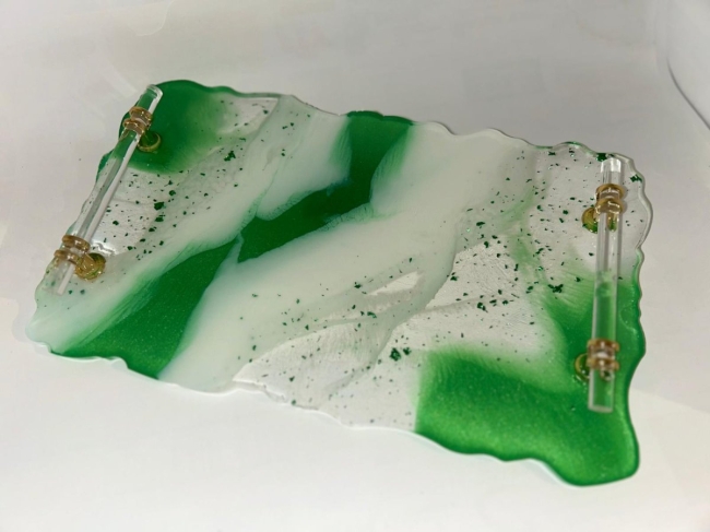 Plateau en résine avec 2 poignées en laiton et résine