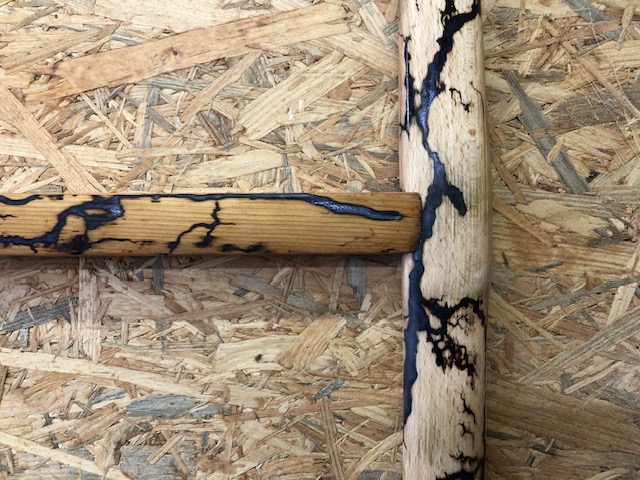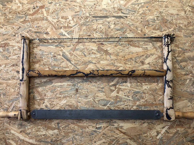 Scie à bois sustomisée avec un effet foudre comblée avec de la résine. Objet de décoration ou pas!Longeur env 800mmHauteur 400mm
